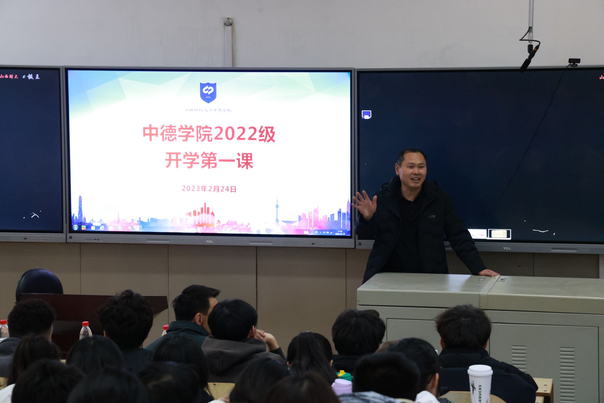 学期伊始,万象更新。2月24日下午,公司2022级新学期“开学第一课”在坞城校区慎行楼301教室举行,学校驻站民警为全体员工讲授安全教育课。中德公司党委书记刘臣洲、党委副书记、经理史贞、党委副书记郭建军、副经理王秀娟出席,2022级辅导员与2022级全体员工参加,会议由2022级辅导员余璐主持。