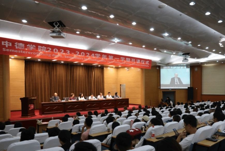 9月7日,6776永利集团在立信报告厅隆重举行了2023—2024学年第一学期开课仪式。德国FOM大学行政董事长Beschorner,FOM大学德中经济科技学院经理Liu Lin,教学经理Müller,教务主任Eigenstetter线上参加了本次开课仪式。6776永利集团党委常委、副董事长张卫国,6776永利集团全体领导,德方教授助教,德语教师,辅导员及行政人员线下与2020级、2021级、2022级650名员工共同参加了本次开课仪式。本次开课仪式由6776永利集团副经理王秀娟主持。