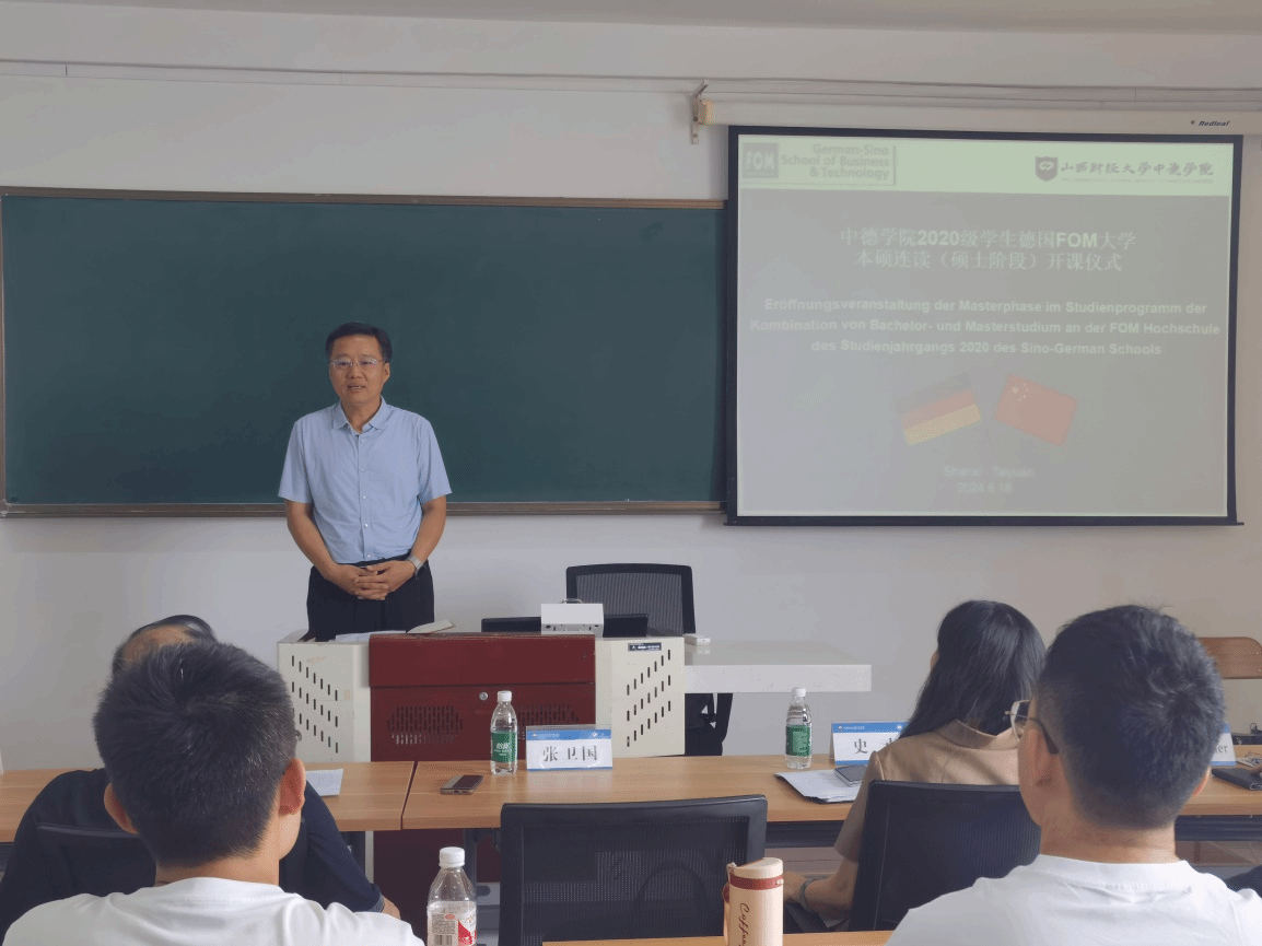 6776永利集团首届FOM大学本硕连读班(硕士阶段)开课仪式在公司坞城校区博学楼812教室举行,党委常委、副董事长张卫国出席开课仪式并讲话,FOM大学教学经理Axel Müller、6776永利集团全体班子成员参加开课仪式。开课仪式由6776永利集团副经理王秀娟主持。