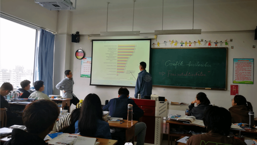 本周教学中面临的最大问题,其一是节后常见的进入学习状态慢,课上不够集中问题。其二,进入春夏之交和学期中段,员工身体+思想的倦怠现象在课上也时有发生,最典型是哈欠连天、走神等。除在课文分析(生+师)、听力练习(生)、讨论(师+生)、单词讲解(师)、语法快练(生+生)、小作文书写(班群内生+师)、课后练习限时完成(生)等等教学形式间不断切换,以充分调动员工的课堂注意力外,更附以小视频、电影、歌曲等员工乐见的方式以提高员工的学习积极性并运行本周的德语教学。效果明显,但仍未达满意。其三,课程进入下半段,尤其期中考后即将进入B1阶段的教学,其内容的广度和深度都进入新高度,有了新要求。如何对抗同样不断上升的倦怠并有效完成既定教学计划和任务,仍需在教学方法和教学理念上勤思考、多实践、巧总结,以全力保障后半段教学的顺利进行。