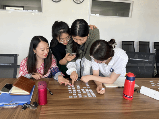 此次交流分享主要包含四部分,第一部分陈老师主要和教师们分享了德语课堂主要的练习类型及展示了各种练习类型的优缺点:传统的集中授课信息输出较快但员工较难长时间集中注意力;自己学习能满足个性化需求但难以激发兴趣;和伙伴一起学能激发学习动机但会弱化个体差异表达;小组学习能够促进学习的自主性,但员工容易“隐身”。随后陈老师还补充说明了针对每种练习类型缺点的建议。第二部分为各种练习类型和互动方式在课堂中的应用。陈老师指出,这些练习类型和互动方式是所有参与教学人员融入课堂的重要工具,合理使用这些工具能够提高课堂学习效果。第三部分为外语教学中的各种互动类型。例如:Kugellager und Karussel(旋转木马练习法), Klassenspaziergang/Autogrammjagd(班级漫步/寻找签名), Stationen lernen(站点式学习), Kettenübung und Reihenübung(链式练习), Laufdiktat und Rückendiktat(跑步听写和背对背听写), Domino-Spiel(多米诺骨牌游戏)等。第四部分为如何在公司大一德语教学实践中运用这些练习类型及互动方式,并结合分享内容同时借助于图片和文字资料现场解说模拟教学环节。