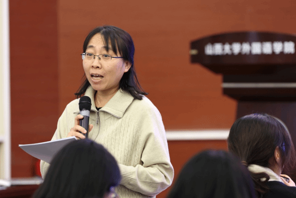 山西大学外国语学院经理杨林秀教授在致辞中表示:“本次大赛为同学们提供了一个展示德语语音才华的绝佳平台,增强了同学们讲好中国故事的能力,希望大家珍惜机会,赛出风格,赛出水平,运用好德语这一桥梁,将中国声音传递得更加悠扬深远,展现出新时代德语学子的风采。”
