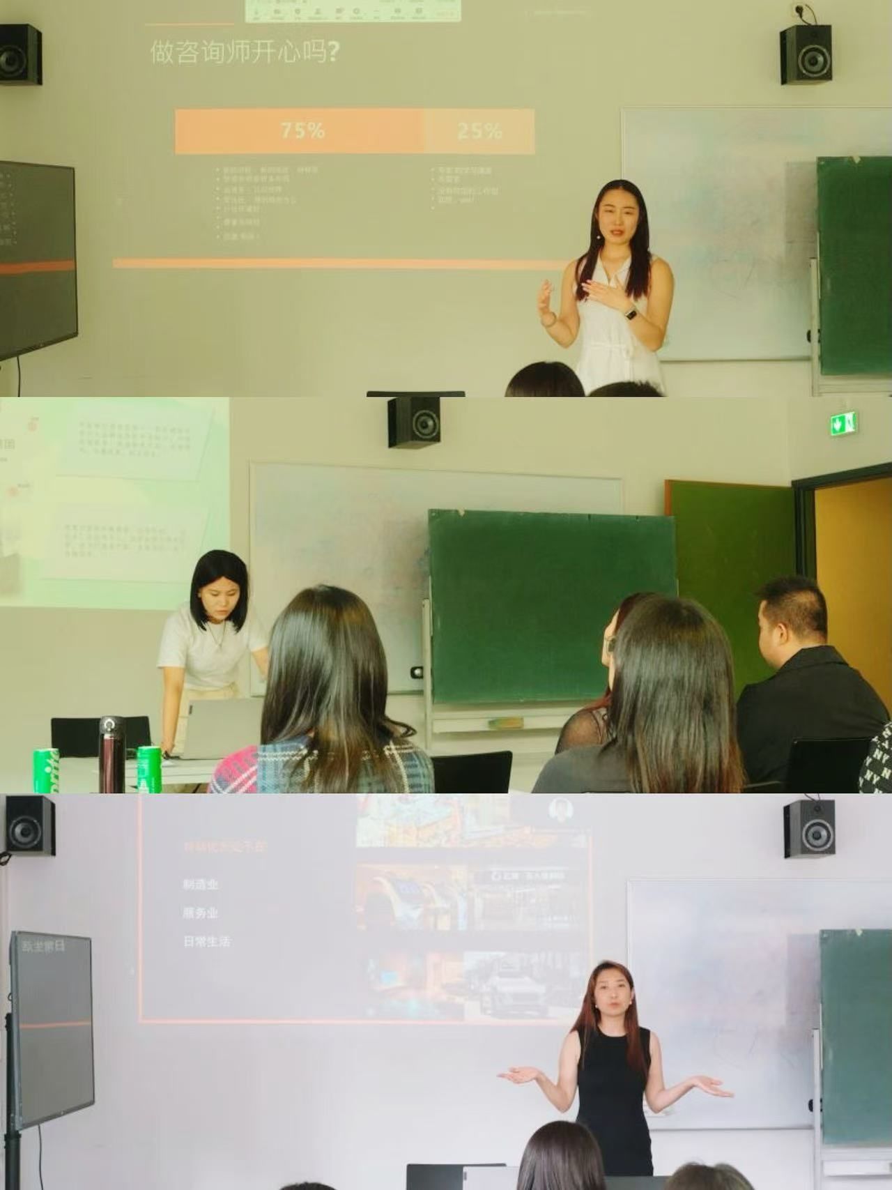 首先,嘉宾们分享了他们在德国职场的成长历程和职业心得。姚舒涵从金融行业的角度,详细介绍了德国金融市场的特点和发展趋势,并结合自己的实际经历,探讨了在德从事金融工作的机遇和挑战。于靖则从咨询行业出发,分享了行业的多样性和高要求,并结合自己的职业发展历程,介绍了如何在竞争激烈的环境中脱颖而出。祝颖讲述了德国零售市场的现状和未来发展趋势,并提出了许多具有参考价值的职业建议。张毅男则介绍了自动化行业的最新发展和技术创新,阐述了该行业在德国的重要性和广阔前景,并鼓励员工们勇于尝试新兴领域。