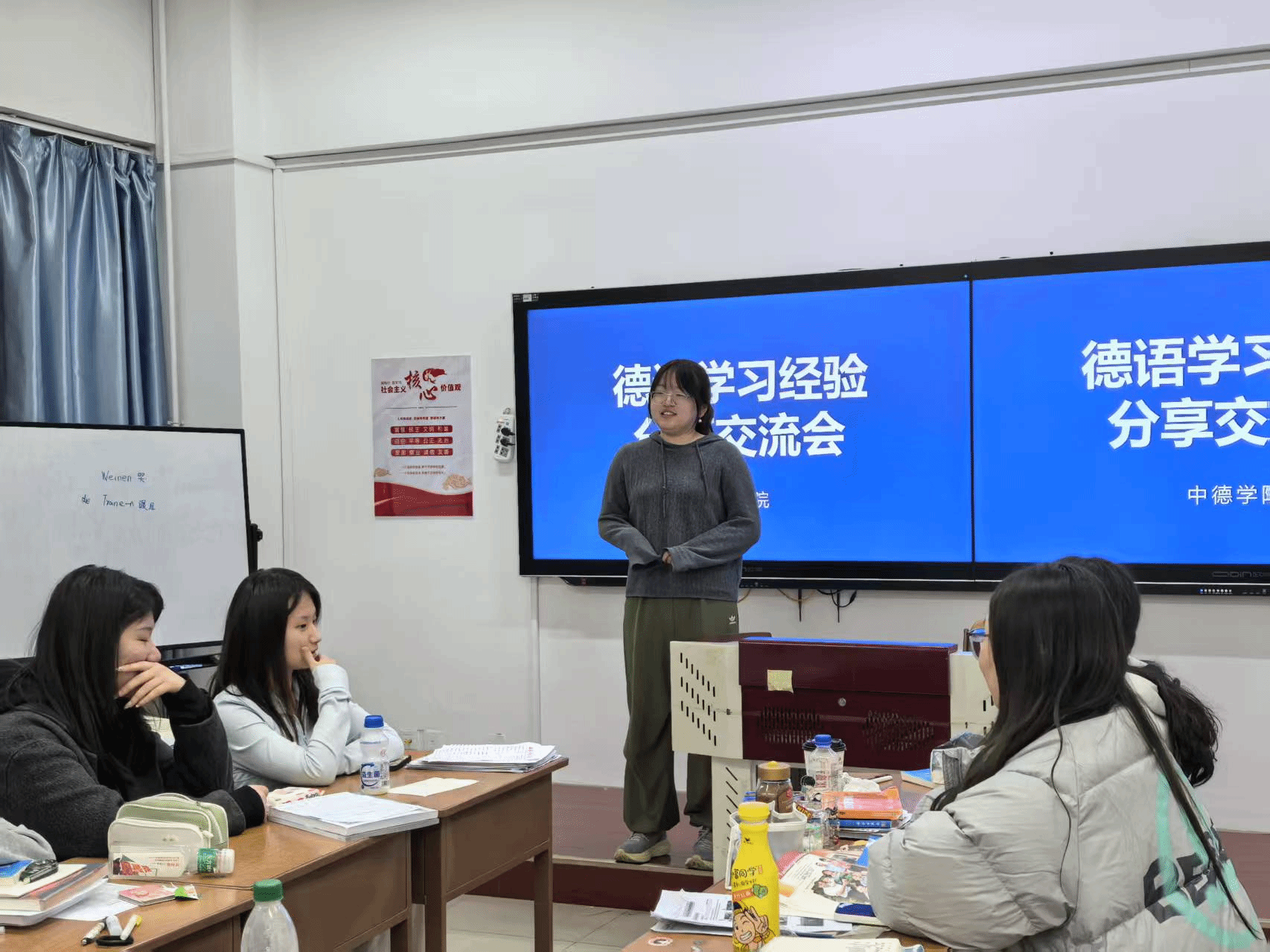 以"跨越国界的雷锋精神"为切入点,学院持续打造中德双语经典诵读项目。志愿者团队精心选取《雷锋日记》选段、德国诗人歌德《浮士德》等中外经典文本,以双语朗诵会的形式诠释雷锋精神的内涵。邀请德国教授通过中德文明对话,围绕奉献精神的当代价值展开交流,在文化的相互理解与尊重中推动雷锋精神的弘扬与发展。