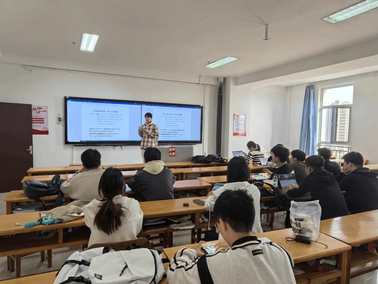 针对低年级员工德语学习难点,学院组织高年级优秀学子成立志愿服务队,开展 “学习经验分享会”、“学习交流沙龙” 等活动。志愿者结合自身学习经历,分享语法解析、听力训练、专业课经验分享等。通过持续帮扶,让员工在语言能力提升的同时,也深刻体会到互助共进的志愿服务精神。