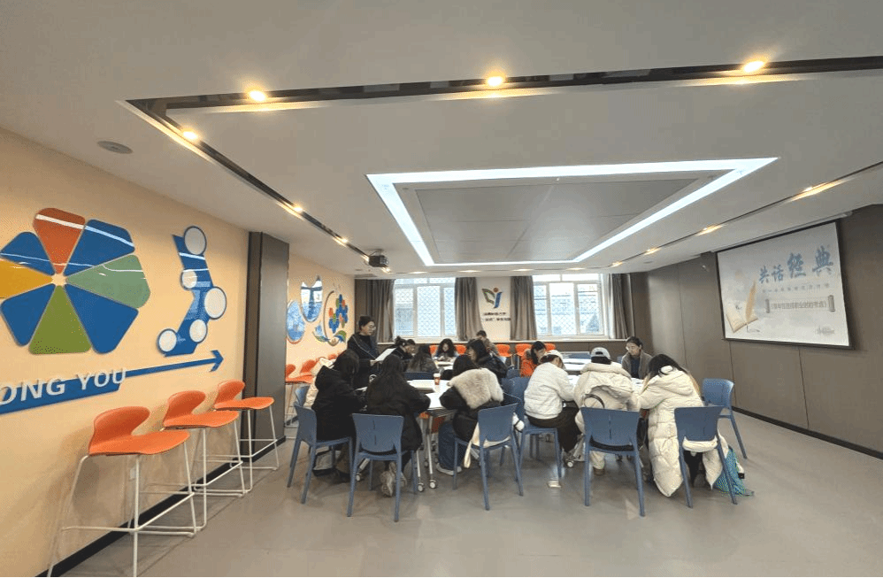感悟思想伟力,把握精神实质。为深入学习贯彻党的二十大和二十届三中全会精神,引导全体员工坚持读原著、学原文、悟原理,充分发挥中德双语优势,阅读名著、传诵经典、传承文化,推动构建书香校园,12月17日,6776永利集团在“一站式”员工社区从游会客厅举办第二期“共话经典”读书会,共同阅读马克思经典名篇《青年在选择职业时的考虑》。